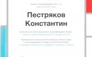 2006 г. - ГОУ ДПО Новокузнецкий ГИУВ по специальности СТОМАТОЛОГИЯ ОРТОПЕДИЧЕСКАЯ